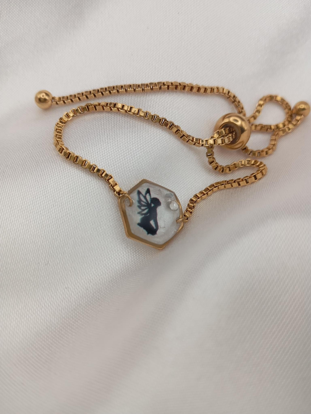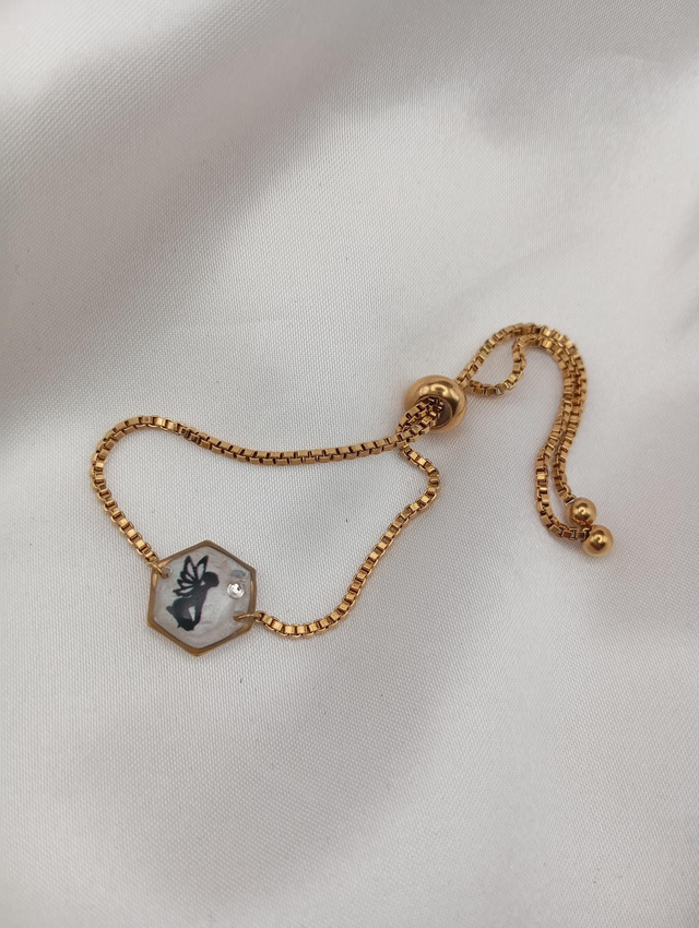 Bracelet réglable Fée strass avec chaîne coulissante acier inoxydable doré